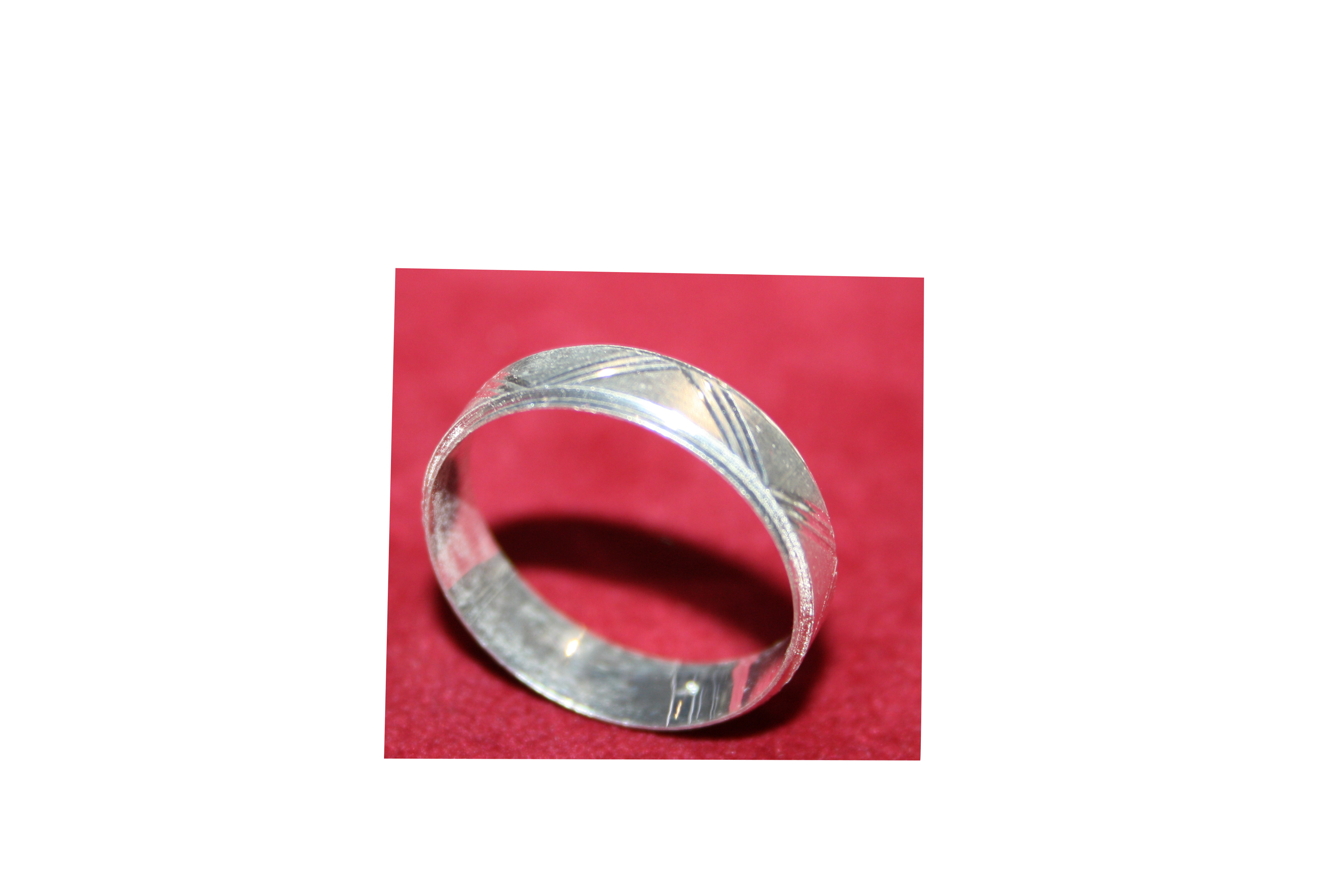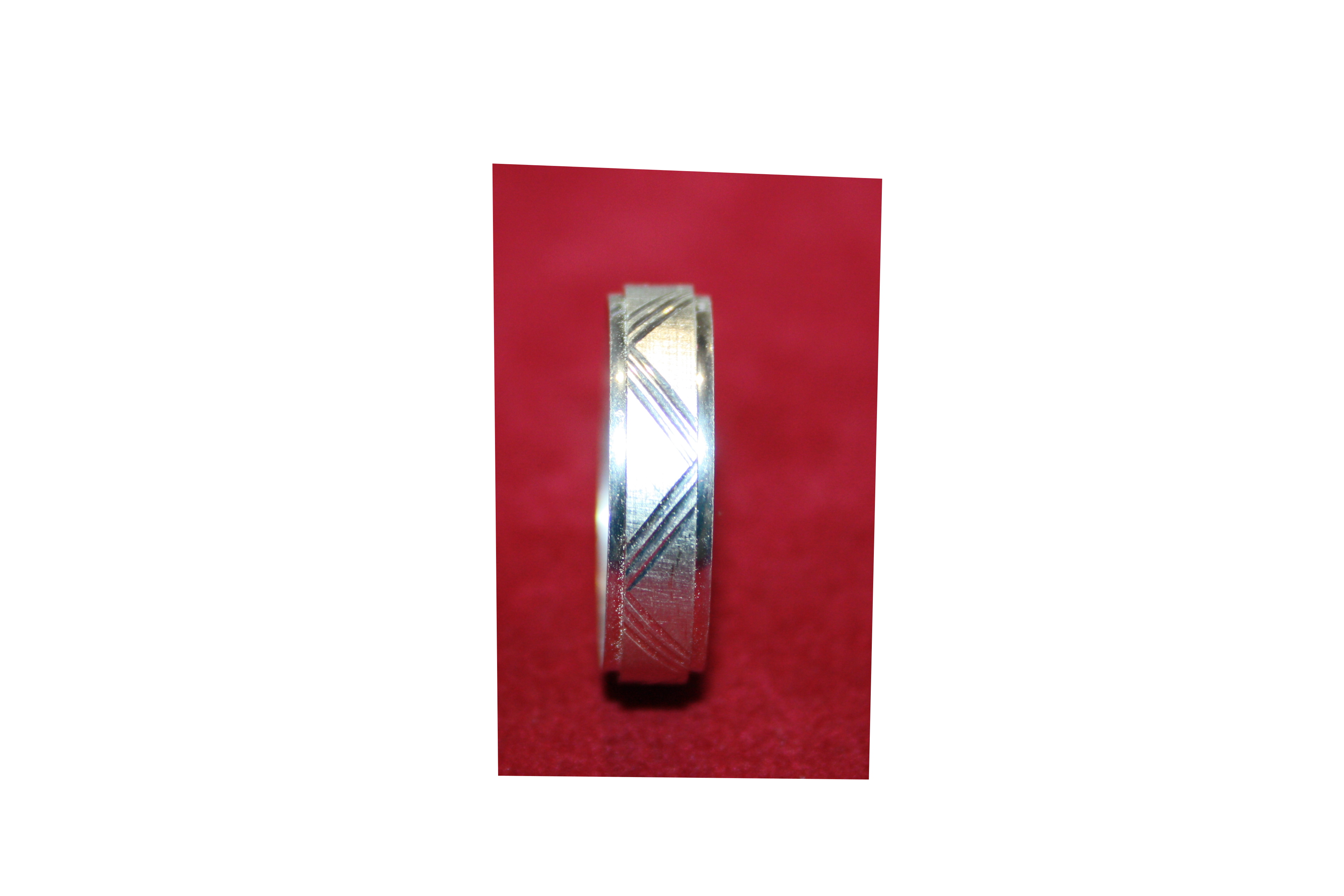 Obrączka wykonana ze srebra próby 925, brzegi proste ozdobiona wygrawerowanym zygzakiem. Rozmiary dostępne od 11 do 28. Waga 3g, szerokość 5mm.