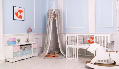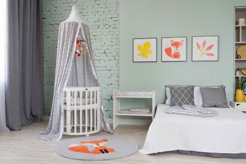Doskonale sprawdzi się jako element dekoracyjny jako dywanik przy łóżeczku.